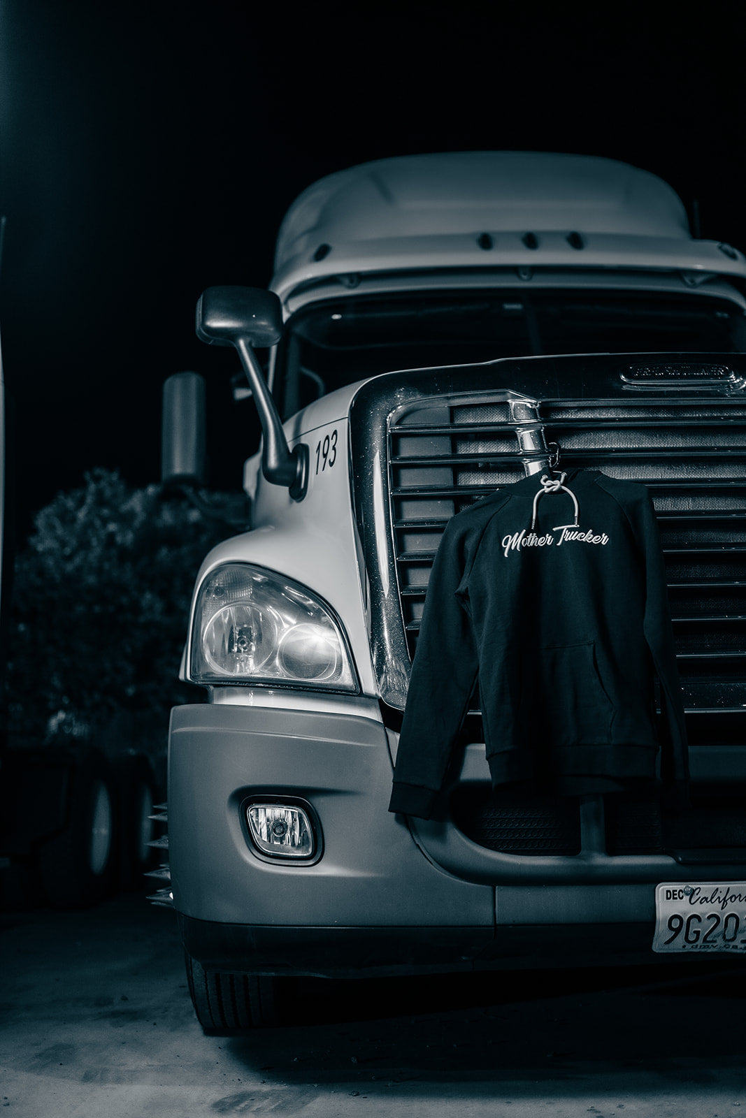 Stay warm during the cool months or while the AC is blasting in your rig with our super stretch cozy hoodie. A black hoodie with a high-quality and detailed embroidery of Mother Trucker. (Standard Fit / Fitted.)