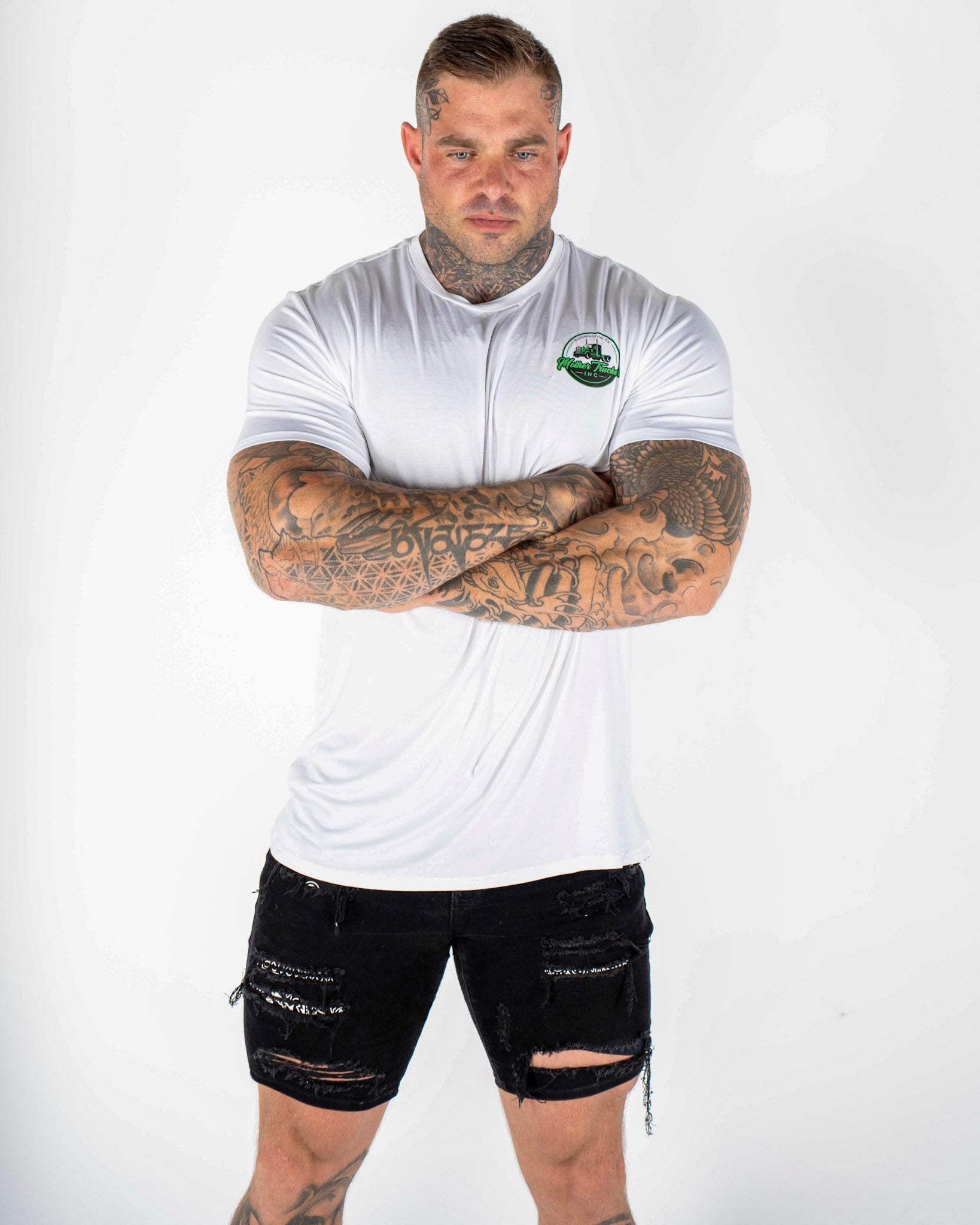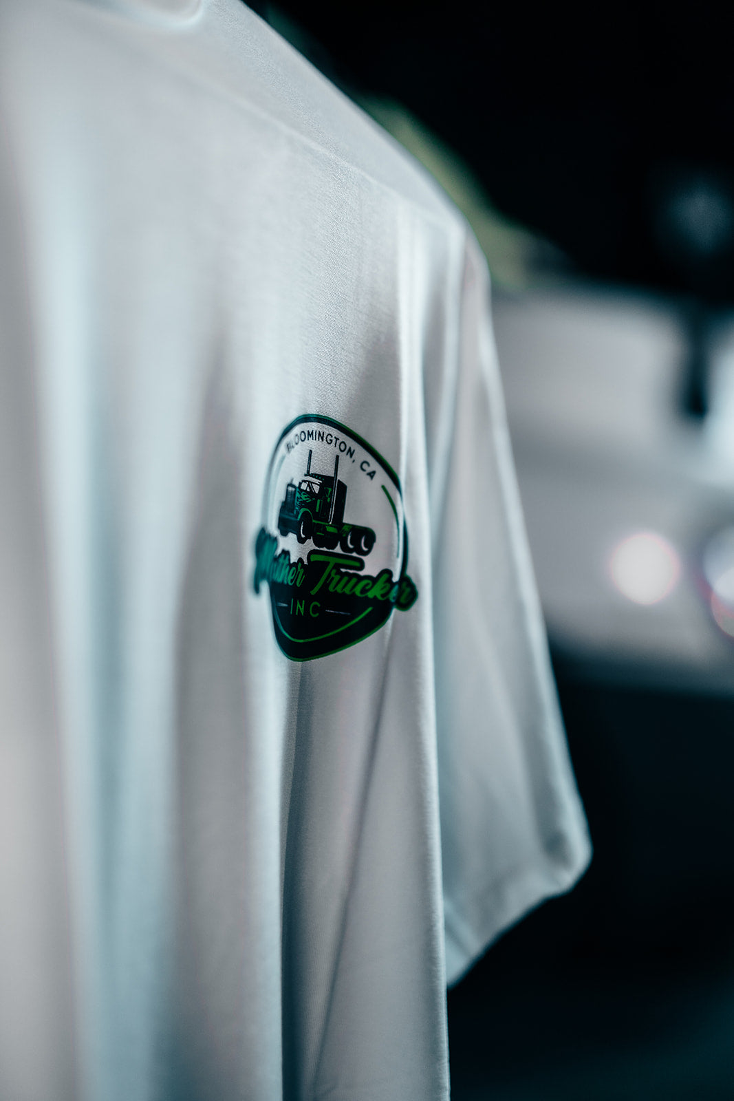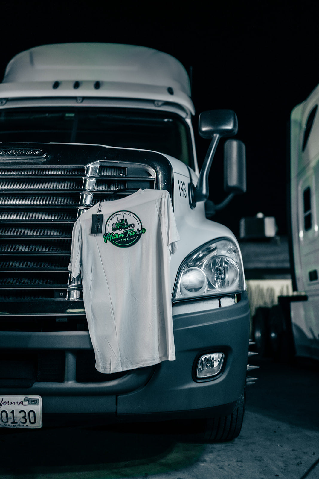 Rock the classic white tee with the signature green Mother Trucker graphic. The Mother Trucker graphic is featured on the front and back. This T-shirt is made from super stretchy luxurious bamboo material for maximum comfort. (Relaxed Fit.)